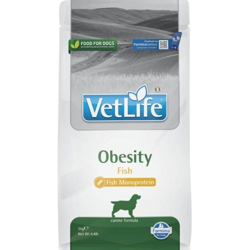 Farmina Vet Life Obesity Fish je kompletní suché dietetické krmivo pro dospělé psy vyvinuté speciálně za účelem snížení nadměrné tělesné hmotnosti. Granule jsou díky nízkému obsahu tuků a cukrů ideální pro psy trpící obezitou. Zdroji sacharidů v krmivu jsou špalda a oves, původní pěstované obilniny s nízkým glykemickým indexem, které umožňují postupné uvolňování energie během dne. Hlavní výhody: