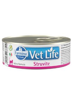 STRUVITE Doporučené použití: Rozpouštění struvitových kamenů a omezení opakované tvorby struvitových kamenů. Okyselování moči. Farmina Vet Life Struvite je kompletní dietetické krmivo pro zvláštní účely výživy pro kočky určené pro podporu rozpouštění struvitových kamenů a k omezení jejich opakované tvorby. Způsob použití: před použitím a před prodloužením doby užívání se doporučuje vyžádat si stanovisko veterinárního lékaře. Podávejte produkt při pokojové teplotě, dle doporučeného denního dávkování uvedeného v tabulce. Doporučená doba užívání: od 5 do 12 týdnů v případě rozpouštění struvitových kamenů a až 6 měsíců v případě omezení opakované tvorby struvitových kamenů. Vždy zajistěte zvířeti přístup k dostatečnému množství vody. Složení: kuřecí maso, brambory, hydrolyzované rybí bílkoviny, ryby (sardinky, tuňák), kuřecí játra, sušená celá vejce, rybí olej, živočišný tuk (kuřecí), quinoa, chlorid draselný, chlorid sodný, vláknina z hrachu, fruktooligosacharidy, kvasnicový extrakt (zdroj mannan-oligosacharidů), sušené pivovarské kvasnice. Okyselovač moči: dihydrát síranu vápenatého (4.5g/kg). Doplňkové látky na 1 kg – Nutriční doplňkové látky: Vitamín A 4300IU; Vitamín D3 170IU; Vitamín E 160mg; chelát zinku hydroxy analogu methioninu 207mg; chelát manganu hydroxy analogu methioninu 110mg; chelátová forma železa, hydrát 14.3mg; chelát mědi hydroxy analogu methioninu 17.1mg; selenometion 17.1mg; jodičnan vápenatý bezvodý 0.7mg; taurin 1250mg; DL-methionin 2000mg. Analytické složky: hrubý protein 10.20 %; hrubé tuky a oleje 5.70 %; hrubá vláknina 0.30 %; hrubý popel 2.40 %; vlhkost 75.00 %; vápník 0.19 %; fosfor 0.17 %; sodík 0.30 %; draslík 0.20 %; hořčík 0.019 %; chlorid 0.35 %; síran 0.20 %; taurin 0.15 %. Energetická hodnota: ME 1130kcal/kg - 4.73MJ/kg.