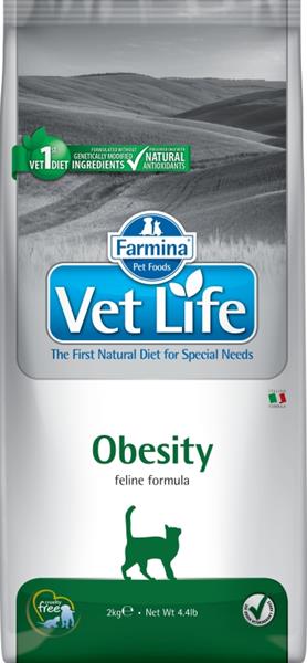 Farmina Vet Life Obesity je kompletní dietetické krmivo pro kočky určené ke snížení nadměrné tělesné hmotnosti.