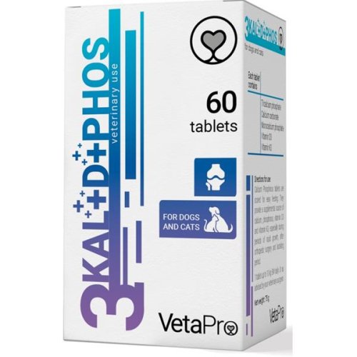 3 Kal D Phos je doplňkové krmivo pro psy a kočky s vápníkem a fosforem, které se podílejí na stavbě kostí a zubů. Používá se během růstu, březosti a laktace. Hlavní přednosti: