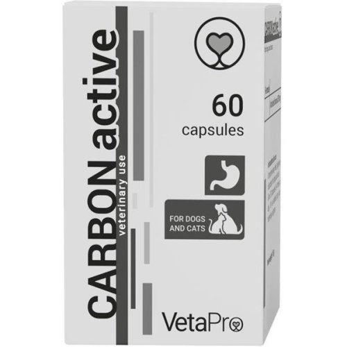Carbon Active je doplňkové krmivo pro psy a kočky působící jako trávicí adsorbent. Zachovává normální funkci trávicího traktu a napomáhá detoxikaci organismu. Díky rozsáhlému povrchu aktivních částic má aktivní uhlí schopnost absorpce velkého počtu látek organického a neorganického původu a plyny. Z gastrointestinálního traktu se nevstřebává a nepodléhá metabolickému rozkladu, ale spolu s látkami, které absorbuje, se vyloučí z organismu stolicí. Složení: aktivní uhlí 250 mg Doplňkové látky: želatina Návod k použití: psi a kočky: 2–3 kapsle do 20 kg hmotnosti 3–4× denně, nebo podle doporučení veterinárního lékaře. Kapsli lze podat celou přímo na kořen jazyka zvířete nebo ji otevřít a její obsah přimíchat do krmiva. Skladování: Skladujte na chladném a suchém místě, mimo dosah přímého slunečního záření. Uchovávejte mimo dosah dětí. Upozornění: Určeno pouze pro zvířata!