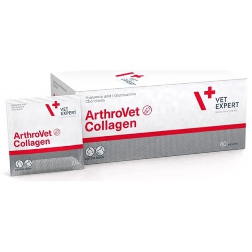 Podpůrný přípravek pro psy a kočky s poruchami správné funkce kloubních chrupavek a kloubů se doporučuje pro mladá zvířata v období intenzivního růstu i pro starší zvířata s osteoartrózou. ArthroVet Collagen obsahuje pečlivě vybraný hydrolyzát kolagenu II. typu, který je přirozenou součástí pojivové tkáně. Kolagen je přítomen v kostech, chrupavkách, šlachách a vazech, podílí se na tvorbě synoviální tekutiny a elasticitu a tvrdost chrupavek. Poskytuje účinnou podporu při poruchách hybnosti nebo ztuhlosti kloubů. Hlavní přednosti: