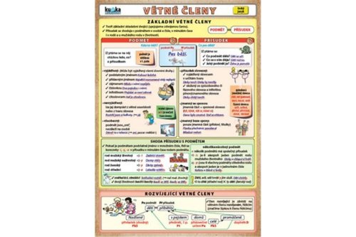 Přehledně zpracovaná a bohatě ilustrovaná pomůcka pro hravé zvládnutí tématu základní a rozvíjející větné členy v češtině.