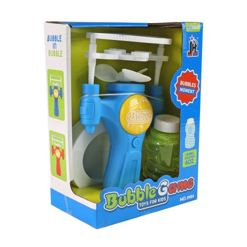 Roztočte zábavu na plné obrátky s tímto veselým větrákem na bubliny, který okouzlí každé dítě! Stačí nalít bublinkovou náplň do přiložené plastové misky, namočit větrák do roztoku a po zapnutí začne vytvářet záplavu poletujících bublin – rychle, jednoduše a bez námahy. Hračka je ideální na venkovní dovádění, oslavy nebo jen tak pro radost. Pro správné fungování je potřeba vložit 2 baterie typu AA (nejsou součástí balení).