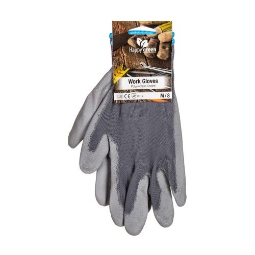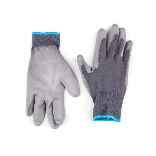 Pracovní bezešvé pletené rukavice v šedé barvě, potažené šedým PU od dlaně k prstu. Rukavice splňují normy EN 420:2003+A1:2009 a EN 388:2016. Osobní ochranný prostředek kategorie II. Rukavice jsou určeny k ochraně proti mechanickým rizikům v suchém prostředí. Jsou určeny zejména pro stavebnictví, strojírenský průmysl, sklady, zemědělství apod. Velikost M/8.
