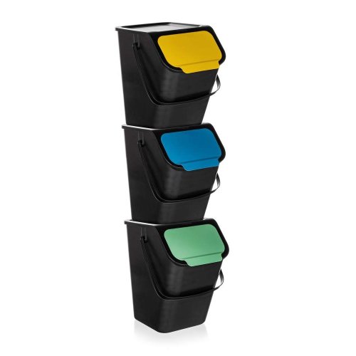 3dílná sada odpadkových košů na tříděný odpad BINI, určená na třídění skla, plastu a papíru. Koše jsou vhodným pomocníkem v domácnosti, navíc jsou stohovatelné a tím ušetříte prostor. Objem koše je 25 l. Rozměry 1 koše: 35,5 x 24,5 x 37 cm. Možno použít s i bez pytle na odpadky. Vhodný na odpadkový pytel o objemu 60 l.