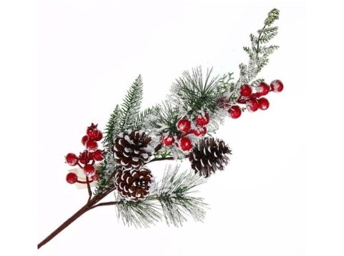 Větvička 200x600mm zasněžená se šiškami a bobulemi