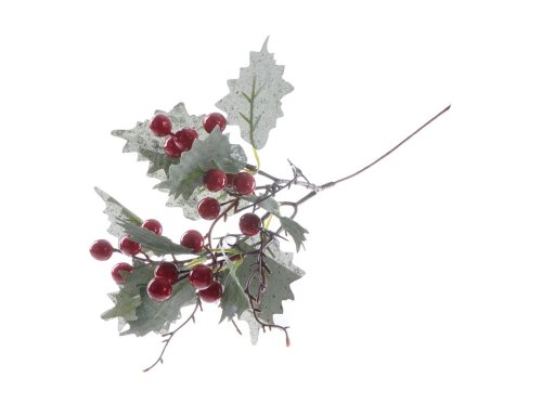 Větvička 280mm vánoční cesmína zasněžená, zelená, červená