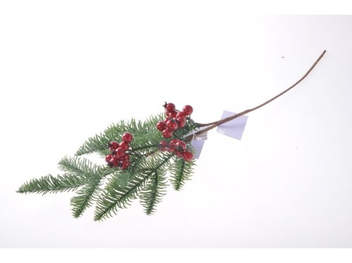 Větvička 560mm umělé jehličí s bobulemi, zelená, červená