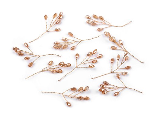 Malou větvičku s broušenými korálky ve tvaru kapky využijete jako svatební i vánoční ozdobu. Korálky mají povrchovou úpravu s AB efektem, nádherně se třpytí. Můžete ji zakomponovat do věnců, svícnů nebo květinových vazeb. Vynikne také volně položená na sváteční tabuli. Hodí se i k výrobě fascinátorů, korunek, věnečků a jiných vlasových doplňků, díky drátkům ji můžete lehce tvarovat. Dají se využít i k výrobě voniček.