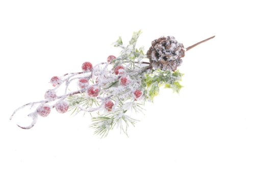 Větvička zasněžená 320mm vánoční s bobulemi a šiškou , barevná