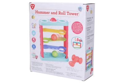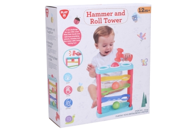 Věž s míčky a kladívkem. Obsahuje věž, kladívko a 3 míčky. Rozměry věže 24x10x27 cm.