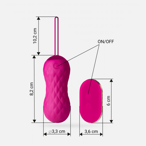 Rozměry: délka kuliček bez šňůrky - 8,2 cm maximální průměr -3,3 cm délka šňůrky - 10,2 cm ovladač - 6 cm × 3,6 cm
