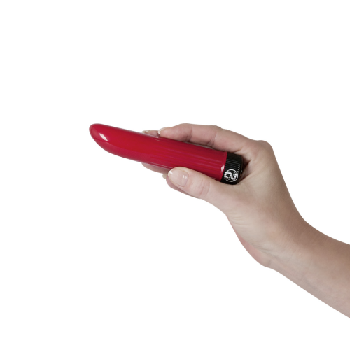 Malý vibrátor s jemnými drážkami. Celková délka 13 cm, průměr 2,5 cm