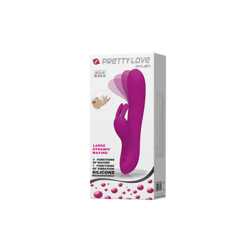 Dylan je multifunkční vibrátor, který nejenže výkyvnou hlavou dráždí váš bod G, ale zároveň celý vibruje včetně dráždiče klitorisu ve tvaru zajíčka. Jeden motorek se nachází v těle zajíčka pod oušky a druhý vibrační motorek je ve špičce pro lepší dráždění bodu G. Vibrátor zapnete tlačítkem ON/OFF. Vlnovkou přepínáte mezi 7 vibračními programy. Tlačítkem Y zapínáte jednotlivé rychlosti pohybu, který simuluje pohyb ohýbajícího se prstu.