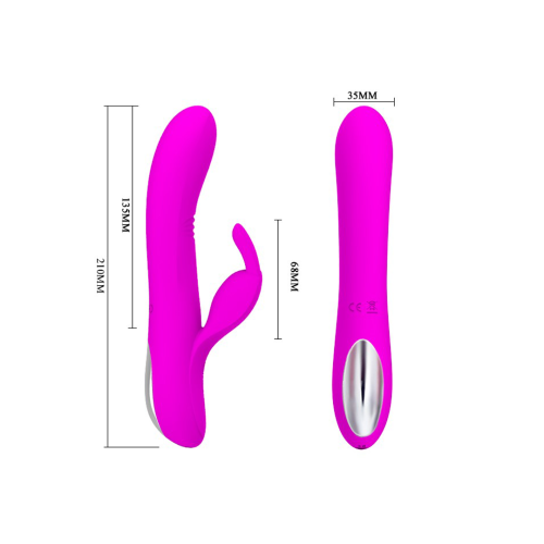 Rozměry a vlastnosti Celková délka: 21 cm Délka pro zasunutí: 13,5 cm Délka dráždiče klitorisu: 6,8 cm Průměr vibrátoru: 3,5 cm Průměr dráždiče klitorisu: 2,6 cm Váha: 214 g Vodotěsný Počet vibračních programů: 7 Počet výkyvných programů: 4 Pohon: USB adaptér Material:silikon