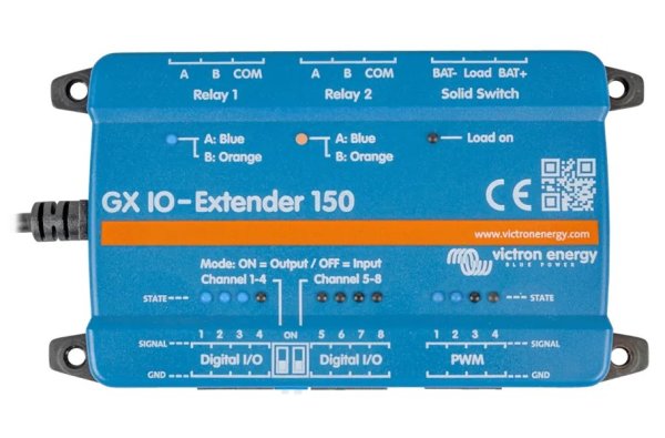 Chytrý rozšiřující modul určený k navýšení počtu vstupů a výstupů u zařízení řady GX. Připojuje se přes USB rozhraní, které zároveň slouží k napájení, a umožňuje jednoduché zapojení dalších senzorů, spínačů či ovládacích prvků. Konfigurace modulu je možná buď přímo přes rozhraní Node-RED běžící na GX zařízení, nebo pomocí přepínačů ve Switch sekci uživatelského rozhraní.