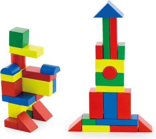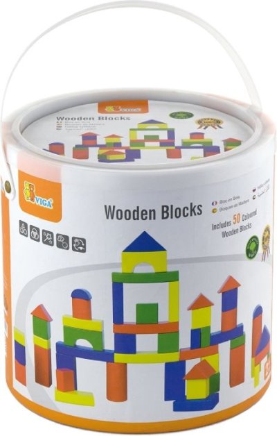 Dřevěná stavebnice s 50 kostkami rozvíjí dětskou fantazii, motoriku a prostorové vnímání. Díky různým tvarům, velikostem a barvám si děti mohou postavit domečky, věže, mosty i celé městečko – jen podle své představivosti. Vlastnosti: