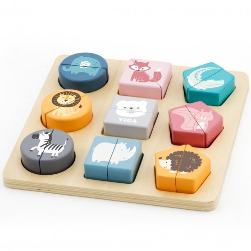 Dřevěná vkládačka Zvířata - Viga : - učí, jak řešit problémy - podporuje kreativní myšlení - podporuje a vyvíjí jemnou motoriku - rozvíjí představivost - podporuje smyslový vývoj dítěte Pomocí této vkládačky se děti mohou učit poznávat jednotlivé zvířátka. Sada obsahuje 9 dílků s obrázkem zvířat a dřevěnou podložkou pro jejich pokládku.Dílky jsou vyrobeny z vysoce kvalitního dřeva, díky čemuž jsou odolné vůči poškození. Hračka je plně ekologická a bezpečná. Vhodné pro děti od 18 měsíců . Viga je značka založená v roce 2003, ale již existuje ve více než 60 zemích po celém světě. Jejich inovativní nápady byly uznány min. v Evropě, USA, vzdálené Austrálii a Japonsku. Zakladatelé společnosti upozornili na výsledky výzkumu naznačující vztah mezi hrou a učením v prvních letech vývoje dítěte. Pro pomoc rodičům a vzdělávacím institucím při výchově dětí a jejich záchraně z virtuálního světa, který může do značné míry narušit realitu, nabízí výrobce inovativní řadu přírodních materiálů získaných během ekologických výrobních procesů. Bezpečnost a kvalita dřevěných výrobků je pro Vigu prioritou.