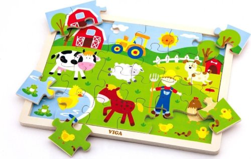 dřevěné dětské puzzle (skládačka) pro nejmenší 24 dílků pro první skládání dílky se mohou umisťovat na dřevěnou desku s rámečkem obrázek lze skládat bez rámečku