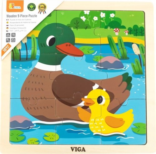 dřevěné dětské puzzle (skládačka) pro nejmenší 9 dílků pro úplně první skládání dílky se mohou umisťovat na dřevěnou desku s rámečkem obrázek lze skládat bez rámečku