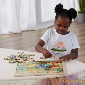 dřevěné dětské puzzle (skládačka) pro nejmenší 48 dílků pro první skládání dílky se mohou umisťovat na dřevěnou desku s rámečkem obrázek lze skládat bez rámečku