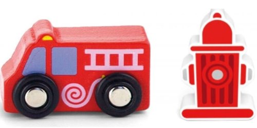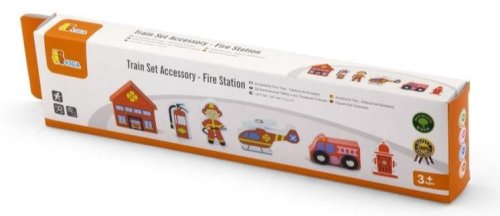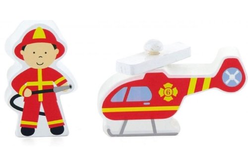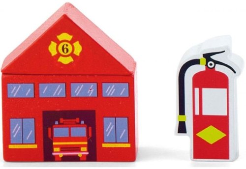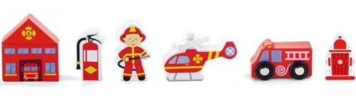 Balení obsahuje dřevěné figurky: hasiče, hasičskou stanici, hasící přístroj, hydrant, hasičské auto, vrtulník. Vhodné pro děti od 3 let.