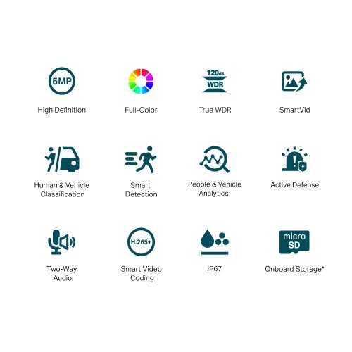 *Vysoké rozlišení *Plnobarevné noční vidění (Full-Color) *Rozlišení osob a vozidel *Inteligentní detekce *Integrovaný mikrofon *Chytré kódování videa