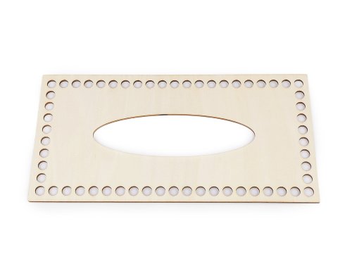 Dřevěné víko využijete k výrobě krabičky na kapesníky. Je přesně vyřezané laserem. Malé otvory po obvodu doplňuje jeden velký otvor uprostřed (4 x 14 cm). Polotovar se dá obháčkovat nebo do něj můžete proplést pedig. Můžete ho také domalovat např. akrylovými barvami, popisovači, glitrovými lepidly, využít ubrouskovou techniku apod. Víko má 58 malých otvorů.