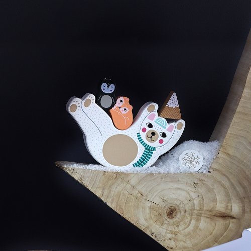 Balanční hra v jemných skandinávských tónech. Hoďte kostkou a podle barvy, která vám padne, zkuste na Eddyho břicho naskládat sněhové vločky, polární lišky, tučňáky nebo hory a chutnou zmrzlinu. Budete nejšikovnější, nespadne vám vše z Eddyho?!Tato hra pomůže s rozvojem jemné motoriky, zručnosti a soustředění.Ilustrováno Michelle Carlslund. Hlavní vlastnosti: 1 základna, 12 herních dílků a kostkailustrace Michelle Carlslundvyrobeno ekologicky, šetrně k životnímu prostředí Cestujte s námi v naivním a elegantním světě dánské ilustrátorky Michelle Carlslund, světě jemných barev, který je plný roztomilých medvědů a přátelských ptáčků. V roce 2010, když Michelle ještě studovala grafický design, vytiskla doma své ilustrace a zkusila je prodat na designovém trhu, kde se setkaly s velkým úspěchem! Několik obchůdků chtělo začít prodávat její výtvory, a tak ji napadlo, že by bylo fajn začít podnikat. Michelle se rychle stala uznávanou nezávislou ilustrátorkou. Dnes lze její ekologická grafická díla zakoupit po celém světě v designových buticích, papírnictvích a dětských obchodech. Michelle se inspiruje vším kolem ní. Její výtvory jsou něžné a poetické, stylizovaný a dětinský styl, který se perfektně prolíná s hračkami firmy Vilac. „Jsem hranolky milující, časová optimistka a tvůrkyně ekologických plakátů a ilustrátorka na volné noze se sídlem v dánské Kodani,“ to by řekla ilustrátorka Michelle Carlslundová, kdyby se měla popsat jednou větou.