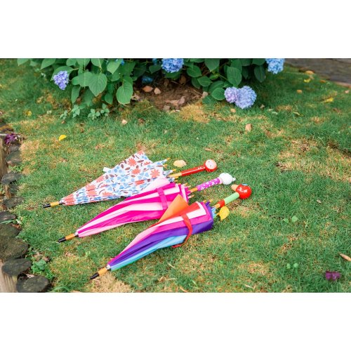 Krásný pestrý deštník s kačerem na rukojeti. Vyrobeno z lakovaného dřeva ve Francii. Hlavní vlastnosti: vyrobeno ve Franciikovová konstrukce, dřevěná rukojeť