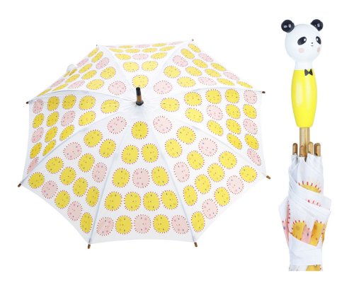Nebojte se jít ven i když prší! Děti budou před kapkami chráněné díky deštníku s originálním potiskem sluncí a madlem s pandou. Design Suzy Ultman. Vyrobeno ve Francii. Hlavní vlastnosti: délka 70 cm, průměr 75 cmdesign Suzy Ultmanvyrobeno ve Francii Suzy Ultman od dětství vytvářela hračky a knížky pro svou rodinu a přátele. Rozená vypravěčka, Suzy je také ilustrátorkou, produktovou designérkou, tvůrkyní hraček a knížek. Vytváří hlavně sofistikované a jednoduché předměty, které inspirují a potěší mladé i staré. Suzy vyrostla v Pensylvánii, ale její život a práce ji přivedly k cestám po světě, nejen jako turistku. Žila v městech od Los Angeles po Portland, přes moře v Amsterdamu a pak zpět v Bostonu. Suzyiny poznatky z těchto míst ji výrazně ovlivňují v tvorbě, ať už jde o zkrášlení Vaší knihovny nebo o výzdobu dětského pokoje, produkty Suzy vychází z malých detailů našeho vnitřního světa, které nás umí rozesmát, které nás spojují s lidmi po celém světě. Když zrovna ve své dílně neskládá papír, nedesignuje textilie nebo nevytváří hračky, najdete ji ve starožitnictvích, ve kterých hledá poklady, na bleším trhu, nebo v přírodě.