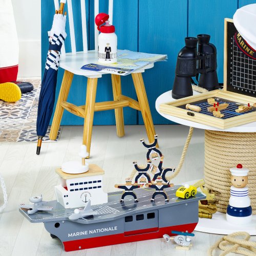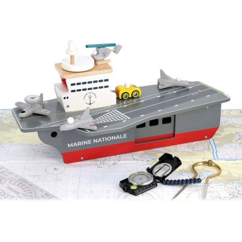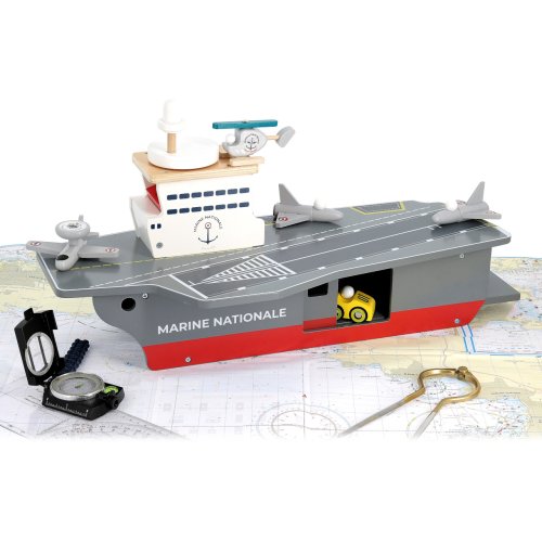 S letadlovou lodí mohou Vaše děti vyrazit na širé moře bránit mír a bezpečí. Je vybavena řadou letadélek i jiných strojů a nabízí dostatek prostoru pro hry s figurkami, nebo i dalšími hračkami. Jako praktický úložný prostor pro příslušenství dodávané s lodí může sloužit rozměrné podpalubí ukryté za dvojicí různých dvířek. S palubou je funkčně propojeno výtahem ve věži, který je nápaditě ovládán kolem v podobě radaru, umístěným na střeše. Hračka je vyrobena ze silné a odolné, přitom ale lehké překližky. Svou barevností a malovanými detaily věrně napodobuje skutečné letadlové lodě, samozřejmě nejsou opominuty ani výsostné znaky francouzského námořnictva. Hlavní vlastnosti: letadlová loď, 2 stíhačky, 1 průzkumný letoun, helikoptéra a servisní vozidlopraktický úložný prostor v podpalubífunkční výtah spojující palubu s podpalubímatraktivní a odolné dřevěné zpracování Šťastnou plavbu! To je přání námořníkům, kteří vyráží na moře. Toto přeje i Vilac, se svou kolekcí, kterou vyvinuli ve spolupráci s francouzským námořnictvem. Vůni moře vítr dofoukal až do pohoří Jura, výsledek jistě potěší malé námořníky a námořnice, také dospělé, kteří pečují o své vnitřní dítě!