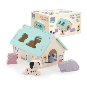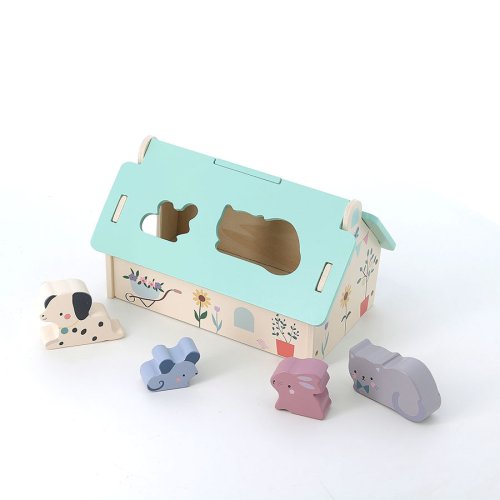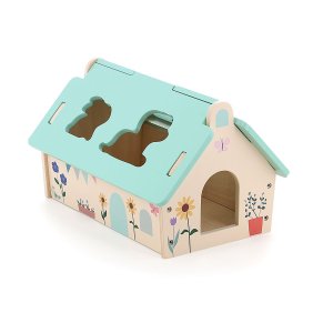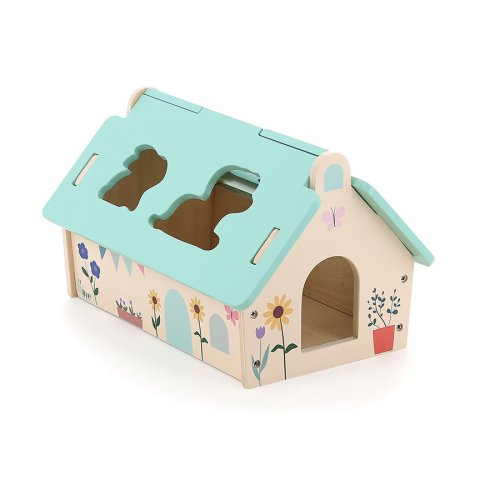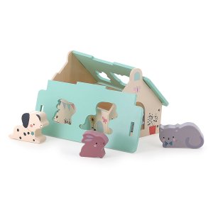 Kdopak to bydlí v tomto malebném dřevěném domečku? Pejsek, myška, kočička a králík. Vkládačka ve tvaru domečku podle návrhu Sarah Betz potěší každé dítě. Domeček v jemných barvách s motivy květin má odnímatelnou střechu s tvarovanými otvory pro vkládání zvířátek. Jedná se o ranou hračku inspirovanou Montessori. Při hře děti rozvíjejí mnoho dovedností jako je soustředění, obratnost, motorika, trpělivost a koordinace ruka-oko. Naučí se manipulovat se zvířátky tak, aby se vešla do odpovídajících otvorů a rozvíjejí svou představivost, když si budou jen tak hrát s s figurkami zvířátek a domečkem. Hlavní vlastnosti: domeček s odnímatelnou střechou, 4 zvířátka – pejsek, myška, kočka, králíknápaditý design Sarah Betzhračka inspirovaná Montessorirozvíjí obratnost, koordinaci ruka-oko a trpělivostpodporuje představivost a soustředění