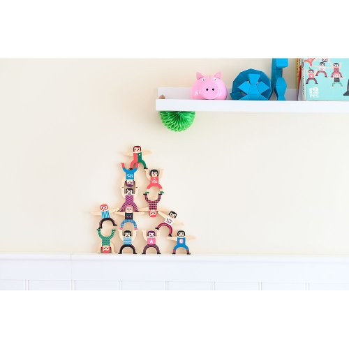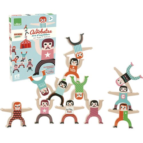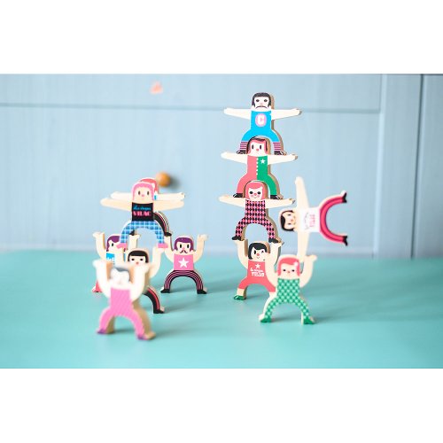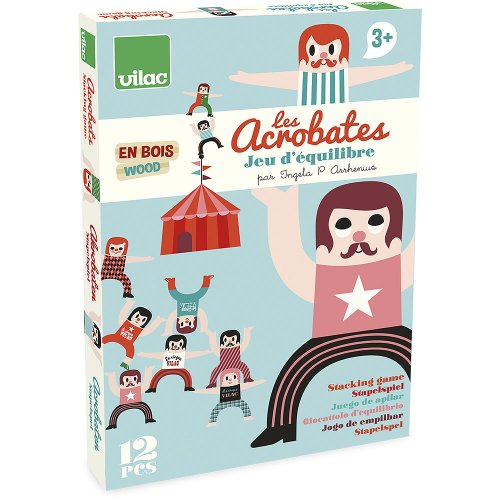 Dvanáct dřevěných figurek akrobatů, s kterými si můžete zahrát balanční hru. Jednoduše skládejte postavičky různě na sebe. Ten, komu akrobati spadnou, prohrál. Ilustrováno Ingelou P. Arrhenius. Hlavní vlastnosti: trénuje trpělivost a logické myšlenídesign Ingela P. Arrhenius Švédská umělkyně Ingela Peterson Arrhenius se narodila v roce 1967. Umění a design měly vždy místo v jejím životě a než začala její kariéra ilustrátorky, Ingela pracovala jako umělecká vedoucí ve Stockholmu. Poté studovala reklamní a grafický design na umělecké škole také ve Stockholmu. V roce 1992 začala podnikat jako ilustrátorka na volné noze a pracovala mezinárodně napříč reklamou, designem, nakladatelstvím… V minulosti vytvářela tiskové vzory pro tkaniny, tapety, papírnictví, také pracovala na obalech, produktovém designu, bytových doplňcích a hračkách. Její plakáty a designové hračky najdete po celém světě. Má vášeň pro retro styl, což je jasně vidět na jejich dílech a také v jejím nadšení pro typografii a barvy. Nyní žije ve Stockholmu s manželem a dvěma syny.