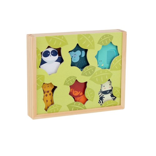 Vydejte se za dobrodružstvím se zvířátky do nepropustné džungle! Se sadou dřevěných postaviček divokých zvířat může Vaše dítě vymýšlet různé příběhy plné dobrodružství a rozvíjet tak svou představivost a kreativitu. Manipulace s dřevěnými postavičkami také pomáhá rozvíjet jemnou motoriku a koordinaci ruka-oko a obratnost. Tato sada navíc podporuje kooperativní hru a sociální interakci. Hraním s ostatními dětmi nebo členy rodiny se dítě učí sdílet, spolupracovat a napodobovat, čímž rozvíjí důležité sociální dovednosti. Dřevěné postavičky jsou robustní a vhodné pro malé dětské ruce. Kromě toho, že jsou zábavné, pomáhají dětem seznámit se s divokými zvířaty. Nabízejí spoustu zábavné a vzdělávací hry daleko od obrazovek a podporují samostatnost. Jsou uloženy v dřevěném boxu s motivy přírody s průhledy, aby bylo na zvířátka vidět. Obsah balení: úložný box a 6 figurek - lev, panda, gorila, slon, zebra a panter. Hlavní vlastnosti:•6 figurek•rozvíjí představivost a kreativitu•podporuje představivou hru•rozvíjí jemnou motoriku, koordinaci ruka-oko a obratnost•zlepšuje sociální dovednosti•dřevěný úložný box s průhledy