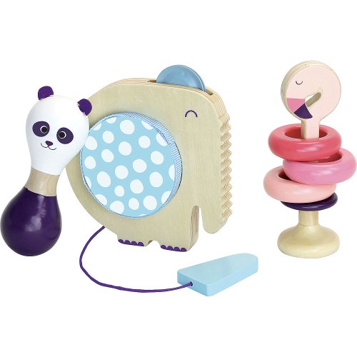 Krásná hudební sada pro nejmenší. Skládá se z barevné rumba koule pandy, sloní tamburíny a chrastítka plameňáka. Vhodné od 12 měsíců. Hlavní vlastnosti: podporuje lásku k hudbě a rytmikuobsahuje 3 díly