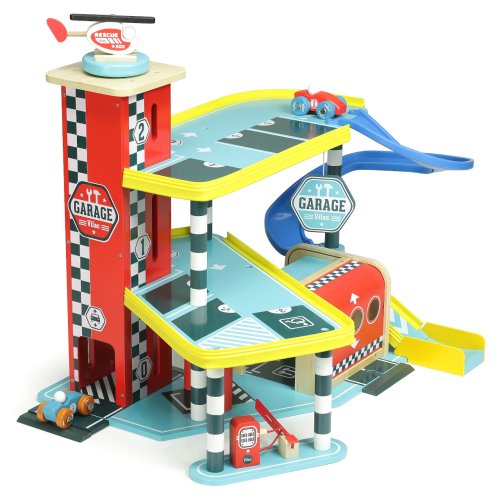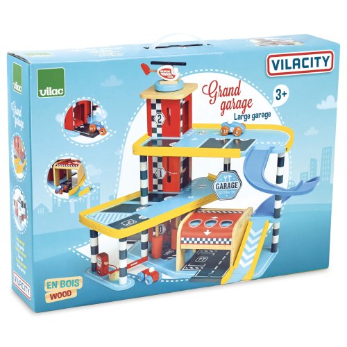 Hračka pro malé závodníky. Jste připraveni na nová dobrodružství? Velká dřevěná garáž s rampou, která nabízí množství mechanických detailů jako jsou výtah, zatahovací dveře, parkovací závora, čerpací stojan nebo mycí kartáče. Součástí garáže je také dvojice autíček a helikoptéra. Výrobek vyžaduje montáž, dodáváno s detailním návodem k sestavení. Tento dřevěný dětský herní set podporuje fantazii a rozvíjí oblíbené imitativní hry. Děti tak mohou být řidiči či mechaniky a objevovat svět autíček a dopravních situací. Hlavní vlastnosti: garáž, 2 autíčka a helikoptéramyčka, parkoviště, benzínka i přistávací plocha pro vrtulníkvyrobeno ekologicky, šetrně k prostředírozvíjí motorické dovednosti a představivostzlepšuje obratnostmultifunkční garážkreativní a vzdělávací hračka