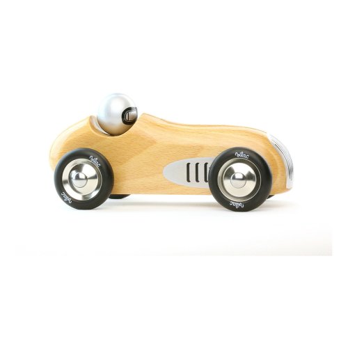 Vintage závodní auto vyrobeno z přírodního lakovaného dřeva s kovovými pogumovanými koly. Je vhodné jak ke hraní tak jako dekorace do pokojů dětí či dospělých. Vyrobeno ve Francii. Hlavní vlastnosti: vyrobeno ve Francii