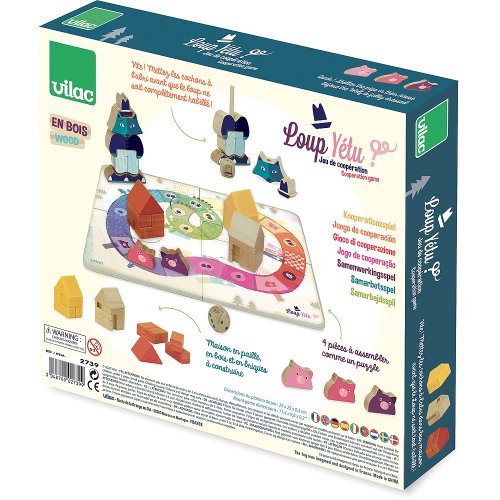 Tato hra je inspirována ve Francii známým rýmem ze 17. století (Kde jsi, vlku?) a příběhem o 3 malých prasátkách. Prasátka hrají proti vlkovi. Zatímco se vlk obléká, musí prasátka urychleně postavit nejprve slaměný, poté dřevěný a nakonec cihlový domeček. Jakmile dokončí poslední domeček (střecha musí být na svém místě), hra končí: prasátka jsou v bezpečí a hra je vyhrána!Buďte opatrní, pokud je vlk oblečen dříve, než prasátka dostaví cihlový domek, může jej sfouknout a hra bude prohrána!V návodu kooperativní i sólo verze. Dřevěná hra, která nesmí chybět ani u vás doma! Obsah hry: 1 dřevěná hrací deska (ze 4 dílků puzzle), 1 dřevěný vlk (5 stohovatelných dílků), 3 figurky (prasátka), 3 domečky k výstavbě (každý 5 ks) a 1 kostka Hlavní vlastnosti: hra na motivy známé pohádkyobsahuje 29 dílů Dokumentace: návod ke hře Tři prásátka (CZ)návod ke hře Tři prásátka (SK)návod ke hře Tři prásátka (FR, EN, DE, ES, IT, PT, NL, SE, DA)