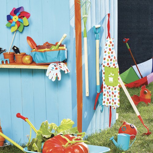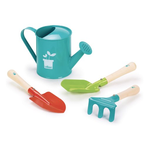 Přenosný set malých zahradníků. Tento velmi kvalitní zahradnický set obsahuje lopatku, hrábě, rýč a konvičku. Taška se dá jednoduše vyprat, nářadí omýt vodou. Nářadí je vyrobeno z masivního dřeva a kovu, velikostně tak akorát pro dětské ruce. Pojďme na zahradu! Hlavní vlastnosti: ideální velikost pro dětirozvíjí motoriku a vztah k příroděvyrobeno z kovu, dřevěná násada