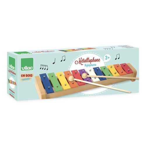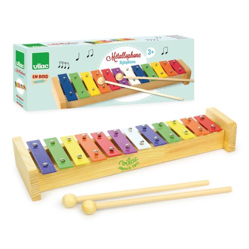 Vícebarevný xylofon, díky kterému se menší děti naučí poznávat barvy a starší skládat melodie. Hlavní vlastnosti: dřevěný xylofón s 12 kovovými klapkamipodporuje kreativitu a cit pro rytmus