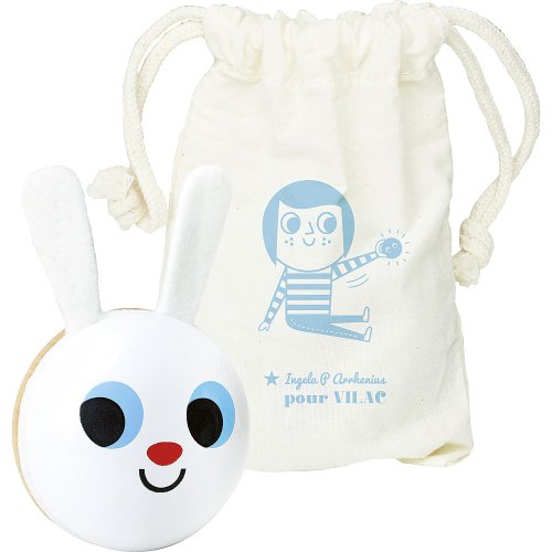 Pěkný zajíček jako chrastítko – rumba koule. Ilustrace Ingela P. Arrhenius. Vyrobeno ze dřeva a plstě ve Francii. Průměr 8 cm. Hlavní vlastnosti: vyrobeno ve Franciidesign Ingela P. Arrhenius Švédská umělkyně Ingela Peterson Arrhenius se narodila v roce 1967. Umění a design měly vždy místo v jejím životě a než začala její kariéra ilustrátorky, Ingela pracovala jako umělecká vedoucí ve Stockholmu. Poté studovala reklamní a grafický design na umělecké škole také ve Stockholmu. V roce 1992 začala podnikat jako ilustrátorka na volné noze a pracovala mezinárodně napříč reklamou, designem, nakladatelstvím… V minulosti vytvářela tiskové vzory pro tkaniny, tapety, papírnictví, také pracovala na obalech, produktovém designu, bytových doplňcích a hračkách. Její plakáty a designové hračky najdete po celém světě. Má vášeň pro retro styl, což je jasně vidět na jejich dílech a také v jejím nadšení pro typografii a barvy. Nyní žije ve Stockholmu s manželem a dvěma syny.