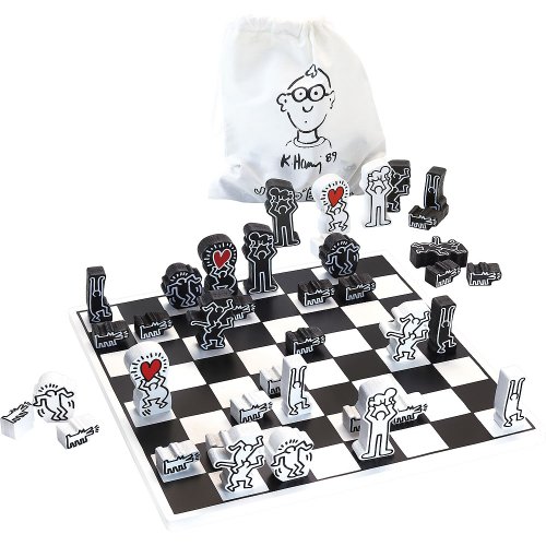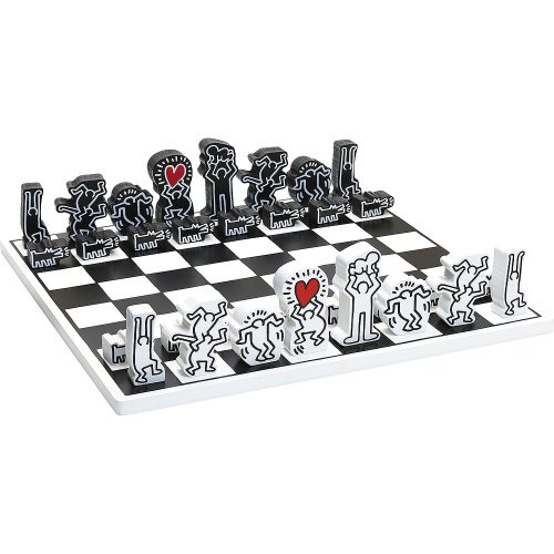 Extravagantně ilustrované dřevěné šachy, které si jistě najdou místo na poličce, jako dekorace. Produkt, který prostě musí mít každý fanoušek dizajnu a Keitha Haringa. Hlavní vlastnosti: tradiční hra v moderním kabátědesign Keith Haring Keith Haring (1958–1990) byl umělec a aktivista, který často používal své umění k vyjádření názoru na různé sociální problémy. Byl jedním z nejznámějších mladých umělců mezi filmaři, umělci a hudebníky, jejichž tvorba reagovala na městskou pouliční kulturu osmdesátých let. V roce 1989 mu byl diagnostikován AIDS, Keith Haring tak založil nadaci za účelem poskytnutí financování a využití svého umění organizacím bojujícím proti AIDS na celém světě, aby zajistil, že jeho filantropický odkaz bude pokračovat neomezeně. Posláním Nadace Keitha Haringa je udržovat, rozšiřovat a chránit dědictví Haringova umění a jeho ideálů. Nadace podporuje organizace, které pomáhají znevýhodněným dětem, stejně jako ty, které se zabývají vzděláváním, výzkumem a péčí týkající se HIV a AIDS. Haring Foundation zastupuje Arestar, LLC, mezinárodní společnost pro licencování a poradenství značek, která se specializuje na umění, módu a designové značky.