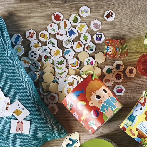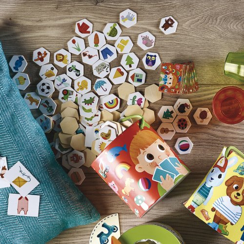 Prověřte postřeh Vašich dětí! Kdo mezi rozloženými dílky dokáže jako první najít obrázek shodný s vyobrazením na kartičce? Hráči přitom musí dát bedlivý pozor, v záplavě obrázků se totiž ukrývají i chytáky! Herní dílky jsou pevné a odolné, vyrobené ze dřeva. Dodáváno v praktickém a atraktivně dekorovaném kbelíku s dřevěným víkem. Hlavní vlastnosti: pro 2–5 hráčů100 herních dílků a 100 kartičekpraktické balení Zkrácený návod hry:Rozložte všechny herní dílky do středu stolu, obrázkem nahoru. Hráč si vezme kartu z balíčku, ukáže ji všem protihráčům. Hráč, který najde obrázek na stole jako první, si tuto kartu ponechá. Vítězí hráč, který jako první nasbírá 10 karet.