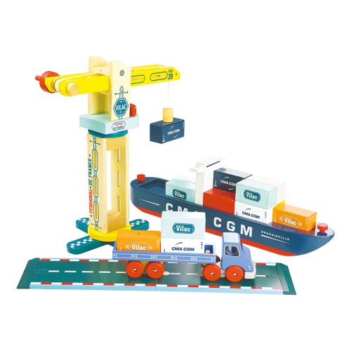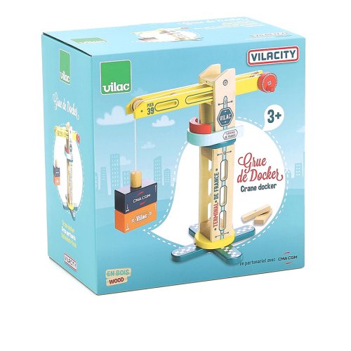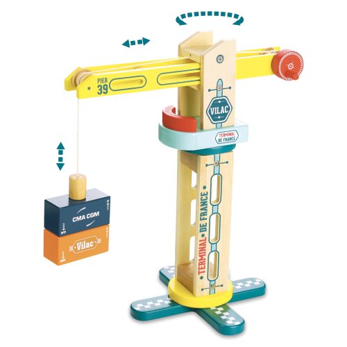 Dřevěný přístavní jeřáb s magnetickým úchopem pro jednoduché přesouvání kontejnerů. Jeho konstrukce umožňuje manipulaci s břemenem ve všech příhodných směrech. Je součástí Vilacity kolekce a je se všemi jejími součástmi plně kompatibilní, další samostatná rozšíření přinesou variabilitu a prohloubí zážitek ze hry. Hlavní vlastnosti:otočný, břemeno lze zdvihat i horizontálně posouvatmagnetický úchopkompatibilní se všemi součástmi Vilac Vilacity kolekcevyrobeno ekologicky, šetrně k prostředí V2356 – Nákladní loď Vilacity (není součástí sady, najdete v naší nabídce): V2356S – Nákladní loď Jacques Saadé Vilacity (není součástí sady, najdete v naší nabídce): V2358 – Nákladní auto Vilacity (není součástí sady, najdete v naší nabídce): Příklad sestavy jeřábu s dalšími součástmi kolekce Vilacity: