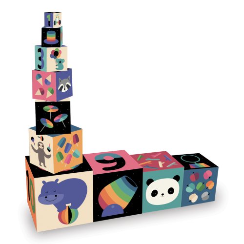 Nechejte děti objevovat duhový svět roztomilých cirkusových zvířat výtvarníka Andyho Westface, se soupravou jedinečných stohovatelných kostek. Stěny kostek obsahují originální ilustrace vztahující se také k příslušnému číslu. Nejmenší tak mohou čísla zábavně poznávat nejen prostřednictvím vztahu k velikosti a rozvíjet poznávací i početní dovednosti. Díky stohovacímu provedení je hračka velmi skladná, zároveň ale umožňuje postavit až 87 cm vysokou věž a rozložená se stane nepřehlédnutelnou ozdobou dětského pokoje. Hlavní vlastnosti: 10 různě velikých a dekorovaných kostekdesign Andy Westfaceatraktivní i praktické provedení Andy Westface je ilustrátor žijící a působící v Hongkongu. Svou prací se snaží zprostředkovat silné pocity a jasné myšlenky za pomoci jednoduchých tvarů, kompozic i barevnosti. Typickými prvky jeho děl jsou zvířata a duha, které si oblíbil pro jejich čistotu, upřímnost a schopnost vzbuzovat radost.