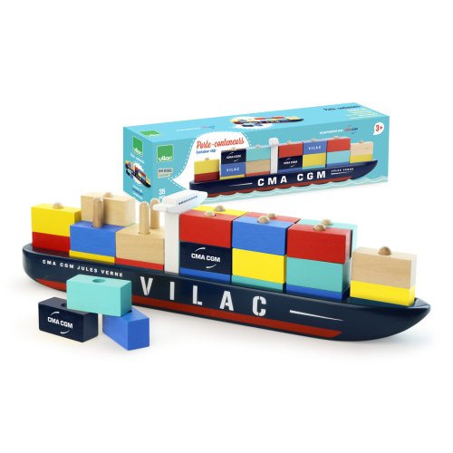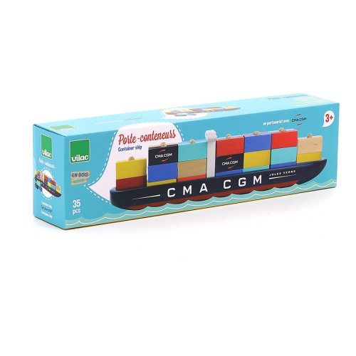 Celodřevěná kontejnerová loď Jules Verne CMA CGM. Naložte loď kontejnery a připravte ji k vyplutí. Hračka je vhodná i jako dekorace. Obsahuje 35 dílků. Hlavní vlastnosti: obsahuje 35 dílkůprocvičuje jemnou motoriku dětívhodná i jako dekorace