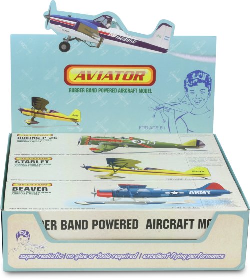 Cena za 1 ks. Letadla s natahovací vrtulí – dá se natáhnout gumičkou. Na výběr ze 3 typů letadel, např. Boeing P-26 nebo Beaver. Hlavní vlastnosti: lehký materiálnatahování na gumičku