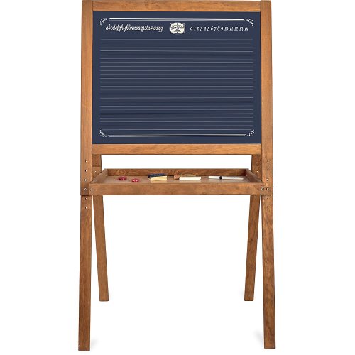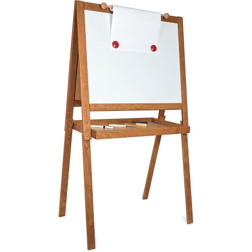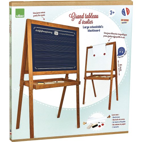 Velká dřevěná tabule, má jednu stranu černou na psaní křídou a druhou bílou na fixy a magnetky. Pod tabulí je také deska pro uložení fixů, křídy... Tabule má nastavitelnou výšku, maximálně však 120 cm. Vyrobeno ve Francii. Hlavní vlastnosti: magnetická tabule na fixy i křídyvyrobeno ve Franciivýška 120 cm
